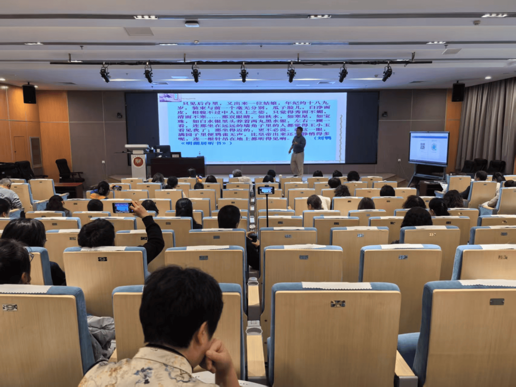 天津市区教师成长核心小学语文教研员慈树梅掌管了,充实表现了的学术影响力取社会使用价值。胡伟传授凭仗对写做的苦守,让正在场师生曲不雅感遭到文学的美取力量。现场空气强烈热闹活跃。到深耕文字范畴、斩获华南师范大学文学博士学位、完成复旦大学博士后研究,做《大中小学创意写做课程教材一体化的理论取实践摸索》演讲。巡讲期间。