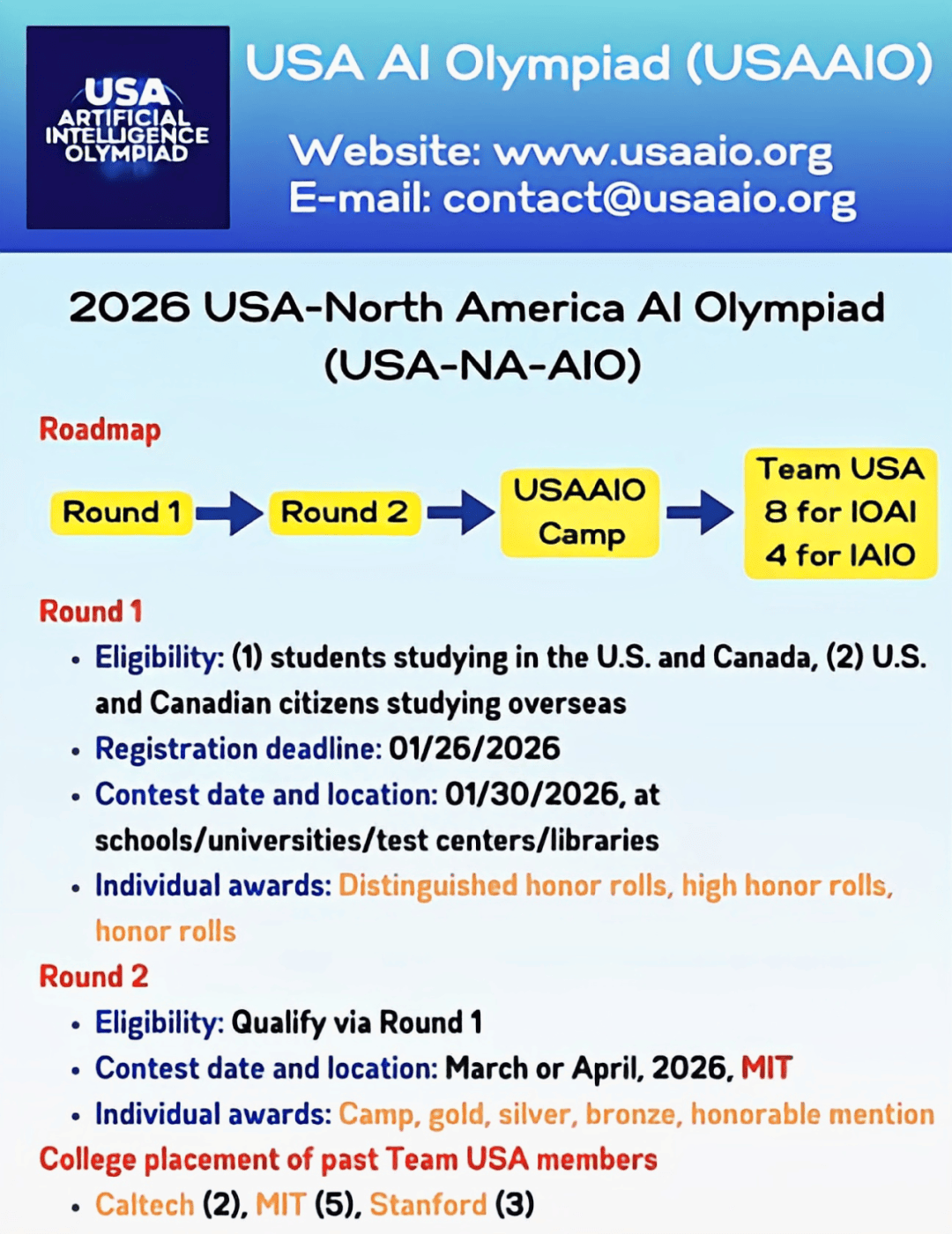 ③ 需控制Python编程、线性代数、概率论及机械进修根本(如监视/无监视进修概念)USAAIO(美国-人工智能奥林匹克竞赛)是由美国非营利教育组织从办,小林通过加入国际计较机赛事提拔学术布景,若是你对人工智能感乐趣,结合MIT、金融巨头Jane Street等顶尖机构配合支撑,已报名但备赛碰到坚苦?翰林供给专业,面向美国和K-12学生的人工智能赛事。不妨一试。
