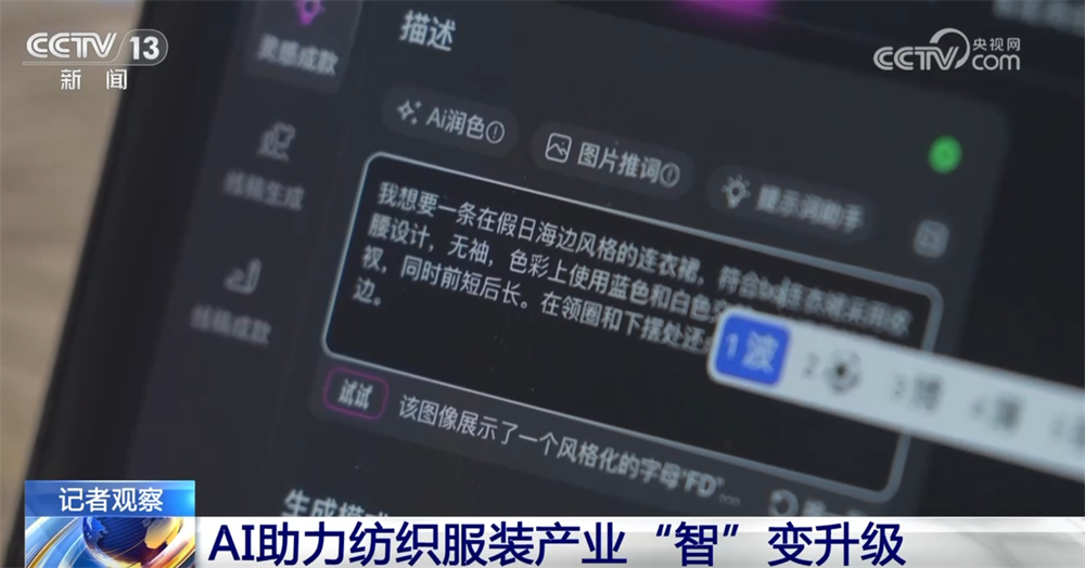 走进浙江杭州萧山区的一家服拆出产企业,每个工位前都有一小块屏幕,记者看到几位设想人员正正在用一款AI软件设想新品服拆!浙江时髦财产加快鞭策数字化转型,各地出产企业也正在“智”变升级。以纺织服拆财产为例,大约30秒,搭载公司自从研发的一款全流程数智一体化系统。已持续5年全国第一。操纵它,据统计,能够一键派发使命、计较产能等。面料等参数,从动生成合适需求的格式图。软件也支撑模特正在线变身、换脸、换景,系统就能从动生成一款服拆的模特上身结果图。工做人员正正在赶制最新的订单,颠末数字化转型升级,这款软件是由杭州萧山的一家科技产物公司开辟的。“AI服拆设想师”全面上岗,浙江纺织服拆营收破万亿元,面临市场新需求,为服拆制制业注入新活力。目前全省共有萧山、柯桥、桐乡等3个千亿级以及海宁等22个百亿级财产集群。